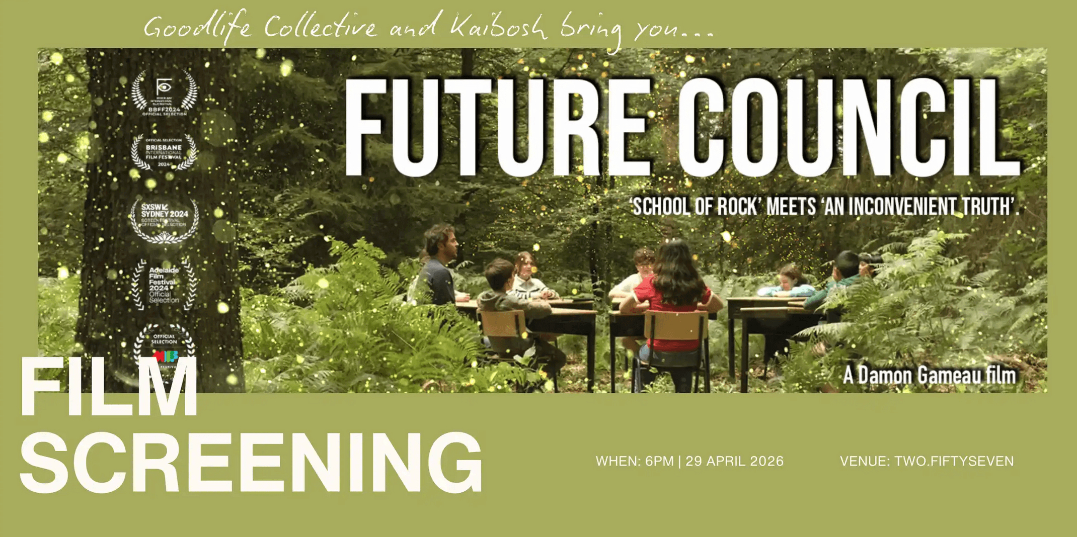 Goodlife Collective and Kaibosh are co-hosting a screening of 'Future Council', as part of the Pōneke Climate Festival!